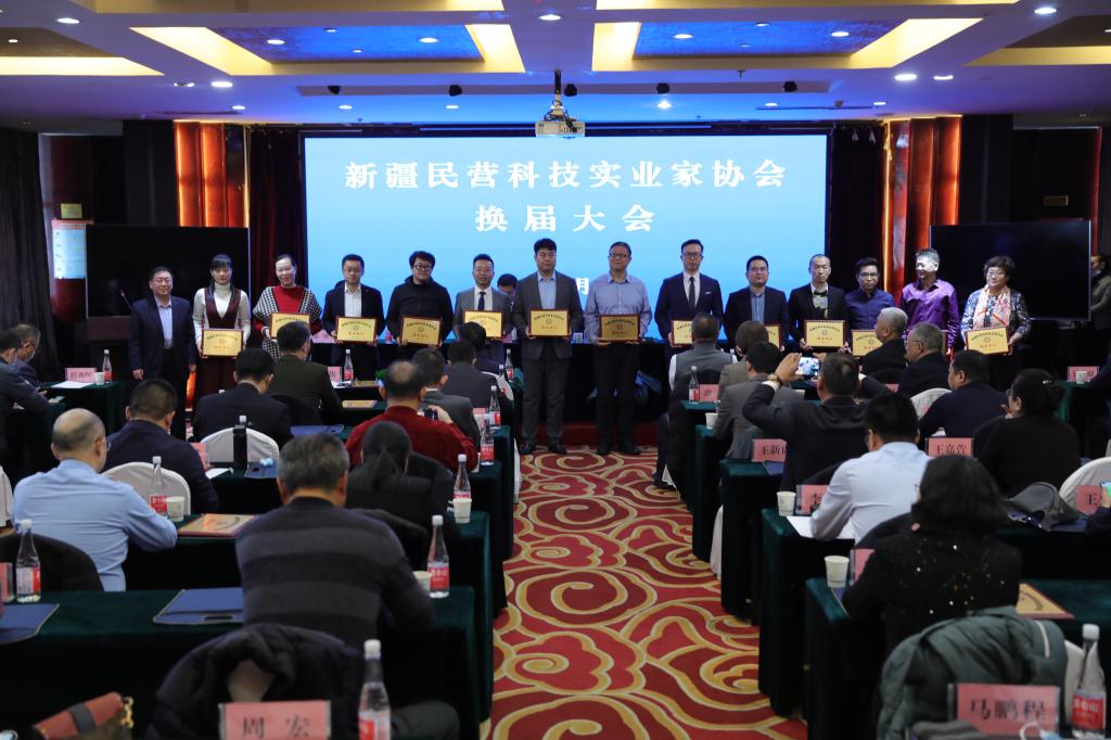 王輝當選為第五屆會長,丁治平等9位同志當選為名譽會長,岳亞梅等10位同志當選為副會長,張建峰等69位同志當選為常務理事、理事。自治區科協、自治區民政廳和新疆民營科技實業家協會有關領導為第五屆會長、名譽會長、副會長、常務理事、理事、會員單位代表授牌。