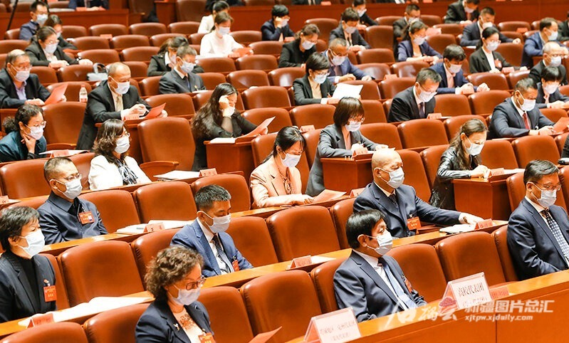 9月15日,新疆維吾爾自治區(qū)科學技術協(xié)會第九次代表大會在新疆人民會堂舉行,與會代表認真聽取會議內容。石榴云/新疆日報記者 謝龍攝