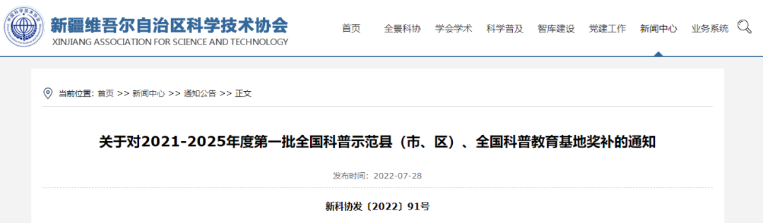 據了解新疆入選此次全國科普示范縣(市、區)的為博爾塔拉蒙古自治州博樂市、塔城地區烏蘇市。
