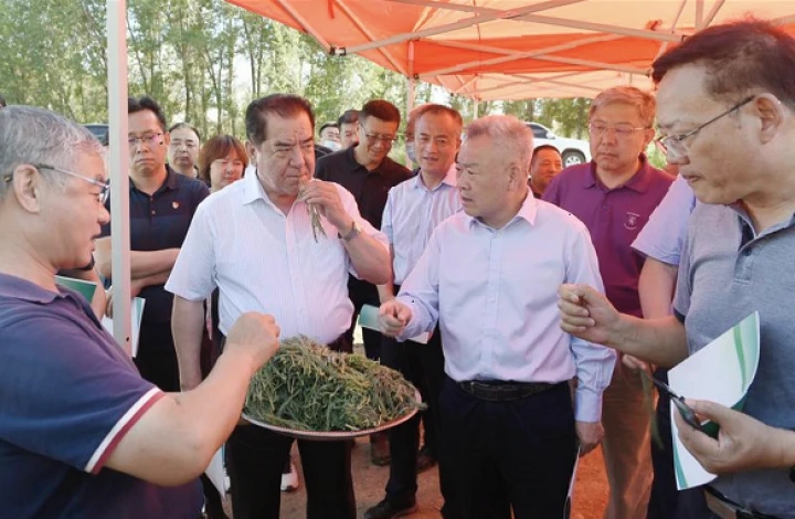 7月16日, 院士、專家在市農業開發區查看綠成公司棉田配種的鹽蒿??死斠廊請笕襟w記者 努爾買買提·艾山 攝
