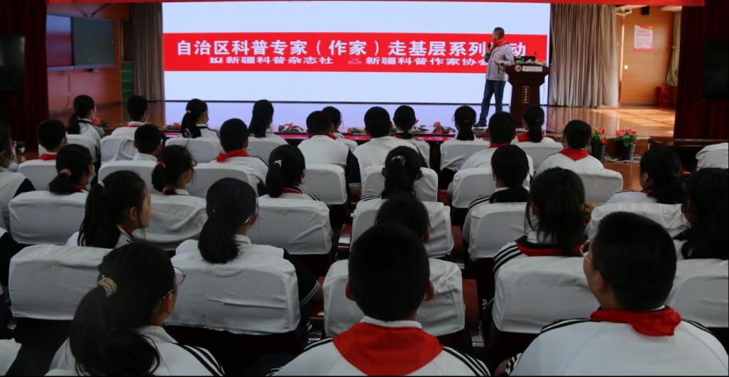 為進(jìn)一步拓寬中小學(xué)生科學(xué)視野、點(diǎn)燃探索科學(xué)的熱情,結(jié)合2023年主題教育學(xué)習(xí)及“為民辦實(shí)事”活動(dòng)要求,5月19日下午,新疆科普雜志社和新疆科普作家協(xié)會(huì)聯(lián)合舉辦了“科普作家進(jìn)校園”活動(dòng)。本次活動(dòng)邀請(qǐng)到了北京工業(yè)大學(xué)軟件工程碩士、中國(guó)科普作協(xié)會(huì)員、中國(guó)兒童文學(xué)研究會(huì)會(huì)員,新疆科普作家協(xié)會(huì)理事--葛勇老師為烏魯木齊市第五十中學(xué)的孩子們帶來(lái)了一場(chǎng)關(guān)于新疆地質(zhì)地貌物產(chǎn)科普的“知識(shí)盛宴”。