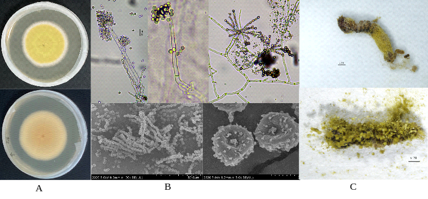 圖6 作品“紅綬曲霉侵染的玉米螟”(王小武 新疆農業科學院微生物應用研究所提供)