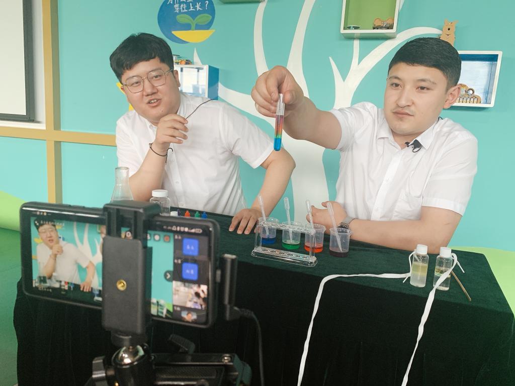 鑄牢中華民族共同體意識,天山南北同上一堂科學(xué)課。2022年首期“民族團結(jié)一家親 同上一堂科學(xué)課”課程《彩虹水》開課,科技輔導(dǎo)員通過直播的方式,為克拉瑪依市康城小學(xué)、喀什葉城縣伯西熱克11村東方希望小學(xué)的200余名師生開展了豐富多彩的線上科教活動,指導(dǎo)同學(xué)們利用食用油、食用色素、白砂糖等身邊常見的食材探究液體密度的奧秘。