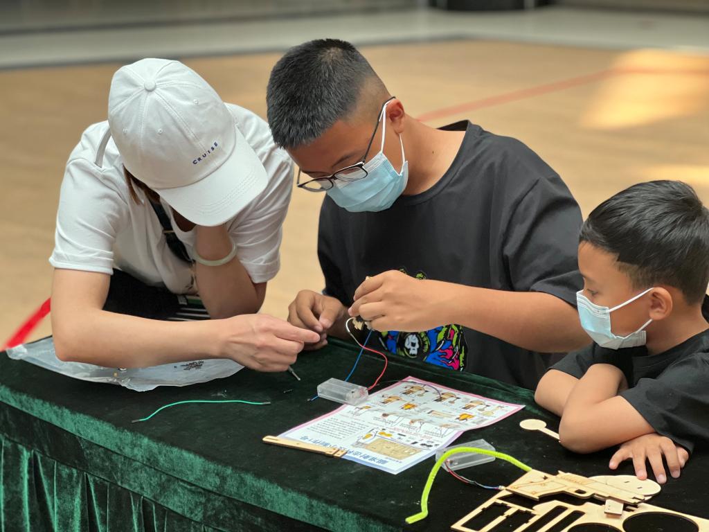 科技動手派科學(xué)教育活動《四通雙電機遙控車》《瞄準射擊科技號》通過啟發(fā)、提問和手工制作等形式,讓同學(xué)們了解機械的基本結(jié)構(gòu)和傳感器的簡單應(yīng)用,培養(yǎng)同學(xué)們的創(chuàng)作能力、思維能力及動手能力?,F(xiàn)場還通過科學(xué)探秘、知識問答等互動形式為觀眾送去了精美的科學(xué)禮品,將現(xiàn)場活動氛圍推向高潮。