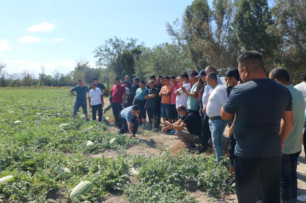 培訓過程中,學員專心聽講并用手機錄像記錄專家講課內容。在田間地頭,新疆農業科學院綜合試驗場相關專家進行現場講解和示范,并就學員們提出的問題進行答疑解惑。“膜下滴灌栽培模式種植的西瓜株距是多少厘米?”“甜瓜果實留在第幾個節位比較合適?”“復播玉米產量高的品種是什么?”一個個問題代表著學員們對科學種植知識的渴望,通過現場交流學習,進一步增強了學員們對科學種植的認識。