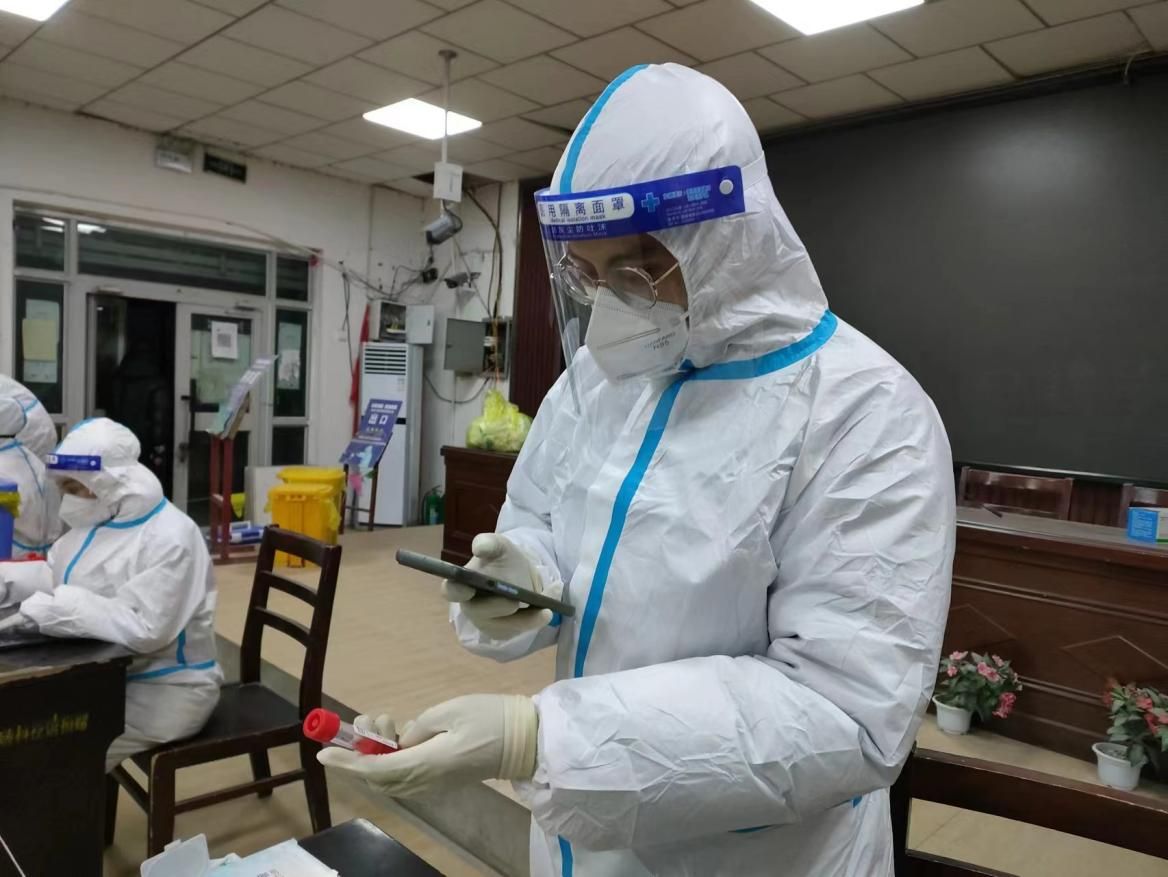 “請(qǐng)大家排好隊(duì),保持一米線的距離,戴好口罩,提前準(zhǔn)備好二維碼。采樣完的群眾請(qǐng)盡快離開,不要聚集……”每天早上7點(diǎn)30分,駐村工作隊(duì)所有隊(duì)員們準(zhǔn)時(shí)到達(dá)各自網(wǎng)格的核酸檢測(cè)點(diǎn),穿上藍(lán)色防護(hù)服裝備,同醫(yī)護(hù)人員一同參與登記掃碼、核酸檢測(cè)、樣本轉(zhuǎn)運(yùn)等工作。針對(duì)行動(dòng)不便的老年人、殘疾人等特殊人群,隊(duì)員們提供上門采樣服務(wù),確保核酸檢測(cè)“應(yīng)檢盡檢,不漏一人”。