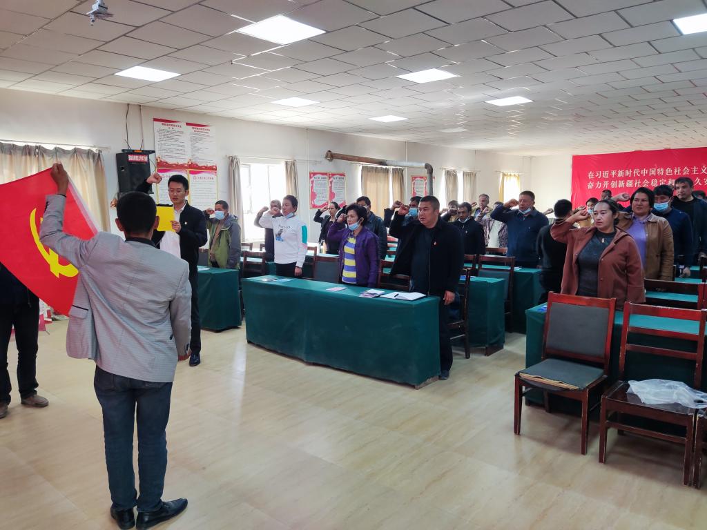 活動現場,夏央村全體黨員面對神圣的黨旗,重溫入黨誓詞。“我志愿加入中國共產黨,擁護黨的綱領,遵守黨的章程,履行黨員義務……”一句句鏗鏘有力的誓詞,激發起黨員干部在回望黨的光輝歷程中奮進新征程的昂揚斗志??此坪喓唵螁蔚闹販厝朦h誓詞,卻有著不同尋常的意義?!罢驹邳h旗下宣誓,就不僅僅是在讀幾句誓詞,而是在向黨作出承諾,今后我將以更加飽滿的熱情投入到為群眾服務的工作中?!毕难氪妩h支部書記艾斯凱爾·麥提托合提說。