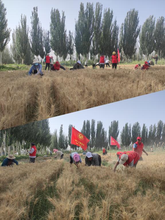 春爭日,夏爭時,夏至過后,到了夏糧搶收的關鍵時刻。為了搶抓農時,確保夏糧及時收獲、顆粒歸倉,繁榮村“訪惠聚”工作隊聯合村“兩委”,充分發揮基層黨組織的戰斗堡壘和黨員先鋒模范作用,組織黨員干部成立志愿服務隊,開展“助農搶收”主題黨日活動,積極投入到夏糧搶收第一線。