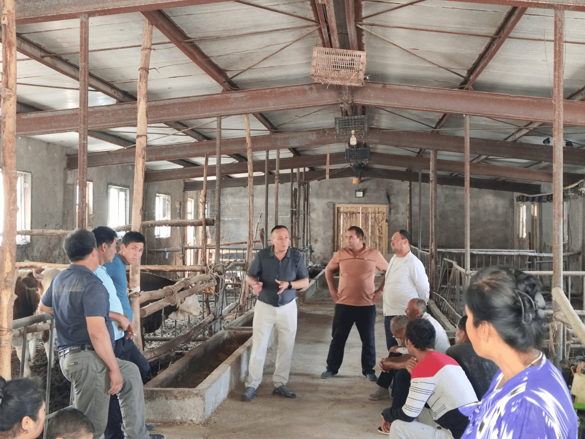 夏季是畜禽疫病高發(fā)期,艾沙江·阿布拉把“防疫課”搬進(jìn)了圈舍,從日常管理到疫病防控,把實(shí)用技術(shù)講得細(xì)致又好懂。“夏天天氣熱、濕度大,口蹄疫和布病是重點(diǎn)防控的疫病,疫苗一定要按時(shí)接種,不能漏一針;圈舍每天都要清掃,每周至少徹底消毒一次,糞便、污水及時(shí)清理,不給病菌留機(jī)會(huì)。”他還蹲下身,拿起新鮮的牛羊糞便,教大家通過顏色、形狀判斷畜禽的健康狀況。“正常的糞便成形、顏色均勻,如果出現(xiàn)稀便、帶血或者有異味,就說明牛羊可能生病了,要及時(shí)檢查治療。”