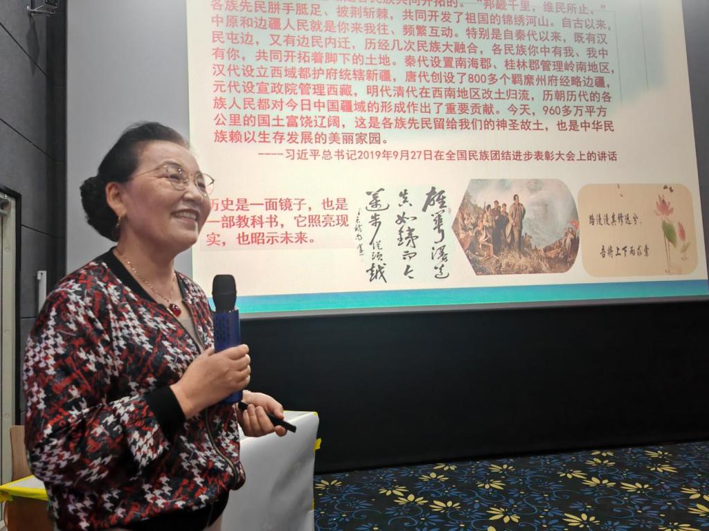 主題黨課環(huán)節(jié),特邀請新疆維吾爾自治區(qū)委員會黨校、國務院特殊津貼專家迪麗達?吐斯甫汗為大家做《二十大精神解讀與新疆“四史”》專題報告。報告圍繞新疆歷史、民族發(fā)展和宗教演變歷史,進行了準確、簡明、生動的闡述。與會人員一致認為,本次講座讓我們對黨的二十大主旨精神和新疆地方史、民族史、宗教史、文化史有了更加深入的了解,我們只有進一步認識和把握新的歷史條件下民族問題發(fā)展變化的特點和規(guī)律,才能不斷創(chuàng)新工作思路和方法,把握正確的未來之路。