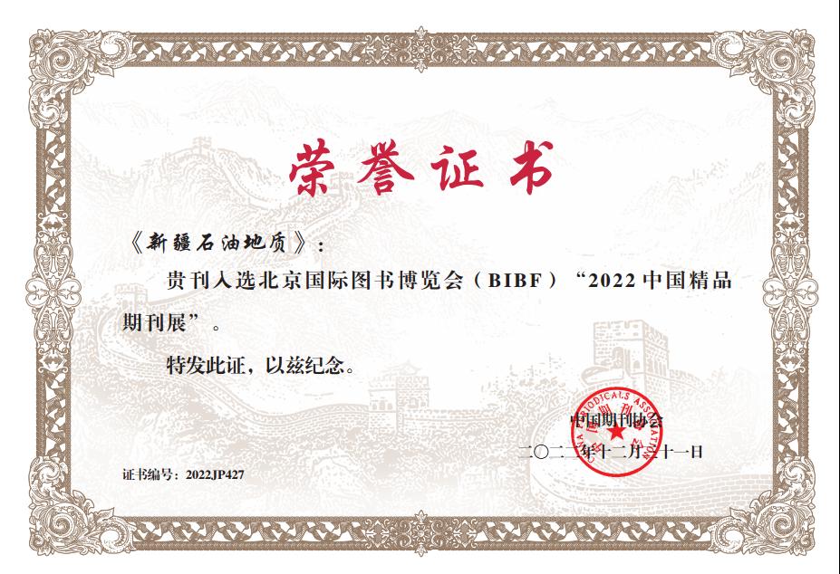 近期,《新疆石油地質(zhì)》入選北京國(guó)際圖書(shū)博覽會(huì)(BIBF)“2022 中國(guó)精品期刊展”。這次展會(huì)主要推薦黨的十八大以來(lái)新時(shí)代新發(fā)展新成就主題宣傳精品期刊和中國(guó)科技期刊卓越行動(dòng)計(jì)劃入選期刊。