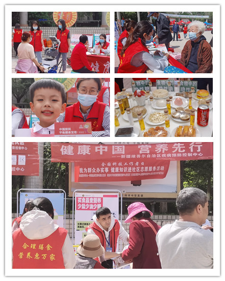 為增強(qiáng)廣大居民對(duì)營(yíng)養(yǎng)健康科普知識(shí)的了解,充分調(diào)動(dòng)全社會(huì)力量共同參與科普工作,發(fā)揮科普志愿服務(wù)隊(duì)在公眾科學(xué)文化素質(zhì)提升服務(wù)的創(chuàng)新作用,以形式多樣的活動(dòng)迎接第七個(gè)全國(guó)科技工作者日到來(lái),5月30日下午,新疆營(yíng)養(yǎng)學(xué)會(huì)、一附院臨床營(yíng)養(yǎng)科聯(lián)合黨支部、烏魯木齊市疾病預(yù)防控制中心黨總支、自治區(qū)疾病預(yù)防控制中心慢病和信息中心聯(lián)合黨支部以“我為群眾辦實(shí)事”為契機(jī)開(kāi)展支部共建主題實(shí)踐活動(dòng),組織黨員、專(zhuān)家、基層營(yíng)養(yǎng)科技工作者和志愿者深入烏魯木齊市水磨溝區(qū)旭東社區(qū)開(kāi)展“我為群眾辦實(shí)事,健康知識(shí)進(jìn)社區(qū)志愿服務(wù)”宣傳活動(dòng)。