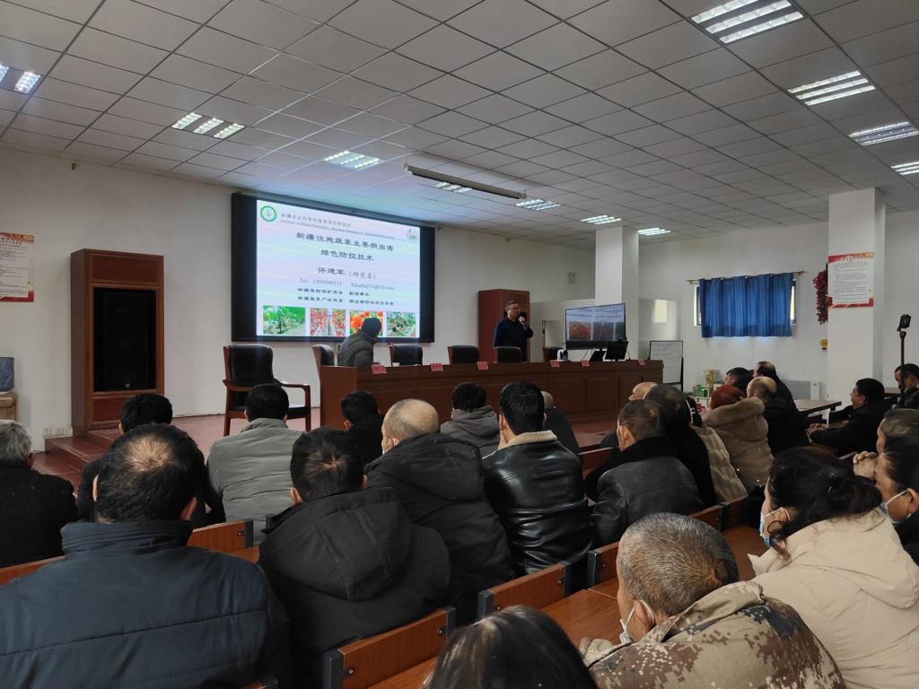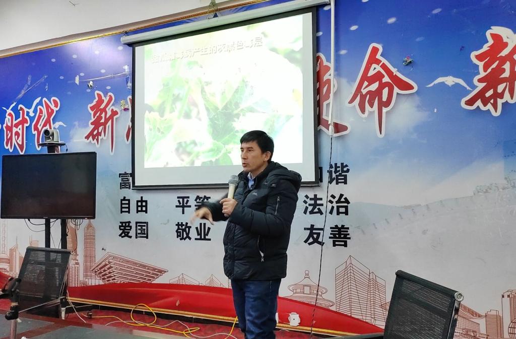 此次培訓采取集中授課、現場咨詢等形式,涵蓋了現代農業發展、農產品質量安全、綠色防控、化肥減量增效、智慧農業、保護性耕作、優質高產栽培、病蟲害綜合防治、植保無人機等方面知識,尤其是對核桃(紅棗、桃、石榴)栽培技術、核桃(紅棗、桃、石榴)病蟲害綠色防治技術、甜瓜病蟲害綠色防控技術、蔬菜(設施蔬菜)病蟲害綠色防控技術、小麥病蟲害綠色防控技術、玉米病蟲害綠色防控技術、微生物在種養殖循環中的應用以及依托科協平臺彰顯學會服務“三農”實踐等現代大農業背景下精準施肥技術與實施、林果栽培技術、綠色植保技術、現代農業發展趨勢等相關知識、技術進行全面細致講解,重點解決“如何種植林果才能高產”“怎樣提高植保綠色防治水平”“如何推進農業綠色發展”等問題,將培訓延伸到基層,將技術服務與理論培訓相結合,在農閑時期為廣大農民充電,讓農民在冬季農閑期間有事干、有知識學,為農業生產提質增效提供科技支撐。新疆植保學會理事長郭文超研究員(博士,視頻授課)、新疆植保學會許建軍研究員、朱曉峰研究員(博士)、艾爾麥克研究員、張仁福副研究員(博士)、新疆微生物學會常務副理事長龍宣杞研究員等專家,分別結合當地生產實際和技術需求,以及生產方面問題的關鍵點和薄弱環節,圍繞核桃、紅棗、蔬菜、甜瓜、玉米、小麥等作物種植技術、田間管理、病蟲害綜合防治和畜牧養殖等技術難點及解決措施內容對農牧民進行了種植業、林果業、畜牧業等實用技術培訓。