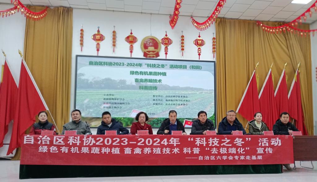 1月30日-2月1日,2023-2024年“科技之冬”暨科技志愿服務活動在和田地區和田縣(拉依喀拉鄉卡勒維村、拉依喀鄉達木提村)、洛浦縣(多魯鎮鄉政府、布拉克曲凱村)、策勒縣(策勒鄉瑪合瑪勒村、達瑪溝鄉古勒鐵日干村)、皮山縣(木奎拉鄉鄉政府、喬達鄉果園村)8個村開展,此次活動由新疆植物保護學會、新疆科技期刊編輯學會、新疆微生物學會主辦,自治區科協、和田地區科協以及各縣市科協共同開展。本次活動精準梳理和田地區農牧民科技需求,組織動員學會專家力量,圍繞綠色有機果蔬種植、科普“去極端化”宣傳以及畜禽養殖技術等多個方面開展培訓,讓“冬閑”變“冬忙”,在惠及民生的同時,著力加強農村科普工作,不斷提升農牧民科學文化素質和生產技能,為推進農業農村現代化、提升我區公民科學素質貢獻力量。
