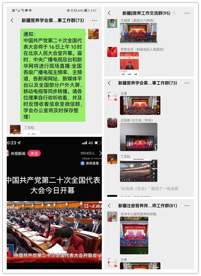 10月16日上午,舉世矚目的中國共產黨第二十次全國代表大會在京盛大開幕。新疆營養學會所有會員無不心潮澎湃、歡欣鼓舞,大家以集中收看、居家收看或以在工作崗位上履職盡責的形式迎接黨的二十大勝利召開。
