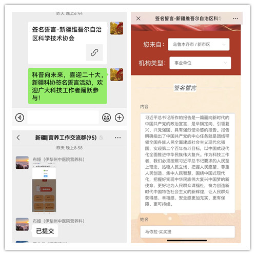 新疆營養學會全體科技工作者一致表示,黨的二十大報告,是開啟新征程的綱領性文獻,新時代10年的偉大變革,在探月探火、載人航天、深海深地探測、超級計算機、衛星導航、量子信息、核電技術、大飛機制造、生物醫藥等方面取得的重大成果偉大成就催人奮進。新時代新征程中國共產黨的使命任務,使我們感到前景光明,使命在肩、責任重大。要深刻領悟“兩個確立”的決定性意義,進一步增強“四個意識”、堅定“四個自信”、做到“兩個維護”,立足本職,自信自強、守正創新,踔厲奮發、勇毅前行,為深入貫徹落實黨的二十大精神和《“健康中國2030”規劃綱要》要求作出應有貢獻。