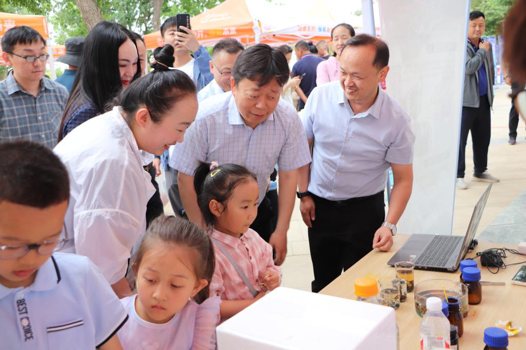 5月18日上午,2024年昌吉州、市科技活動周暨“全國科技工作者日”啟動儀式在昌吉市濱湖河中央公園舉行。昌吉州黨委常委、昌吉市委書記李長江參加啟動儀式并參觀了科普展覽。昌吉學院黨委常委、副校長李碩參加啟動儀式,并為昌吉學院新疆低階煤高值化綠色利用重點實驗室中試基地授牌。昌吉學院科研處、化學與化工學院、物理與材料科學學院、航空學院、能源與控制工程學院、信息工程學院及教育科學學院百余名師生參加此次活動。昌吉學院作為協辦單位積極組織各學校參加科普活動展示。