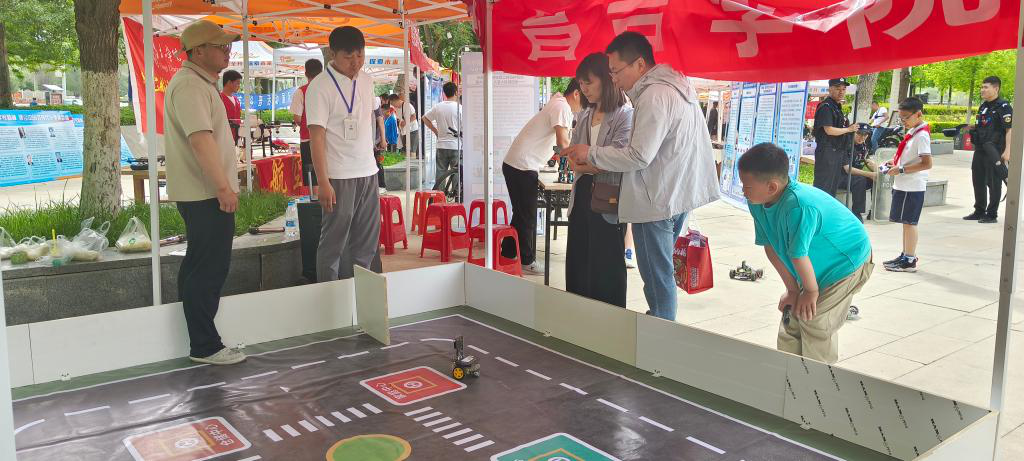 ▲信息工程學院師生向學生及市民科普“ROS智能小車”
