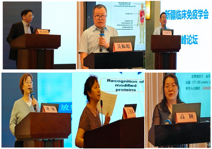 在第一屆新疆臨床免疫高峰論壇上,邀請(qǐng)到中國(guó)免疫學(xué)會(huì)自身免疫分會(huì)主任委員、北京大學(xué)人民醫(yī)院風(fēng)濕免疫科栗占國(guó)教授,中國(guó)醫(yī)師協(xié)會(huì)風(fēng)濕免疫科醫(yī)師分會(huì)會(huì)長(zhǎng)、北京協(xié)和醫(yī)院風(fēng)濕免疫科曾小峰教授,中華醫(yī)學(xué)會(huì)風(fēng)濕病學(xué)分會(huì)主任委員、北京協(xié)和醫(yī)院風(fēng)濕免疫科趙巖教授,中國(guó)醫(yī)師協(xié)會(huì)風(fēng)濕病專科醫(yī)師分會(huì)血管炎學(xué)組主任委員、北京協(xié)和醫(yī)院風(fēng)濕免疫科田新平教授,歐洲神經(jīng)肌肉疾病中心委員、中日友好醫(yī)院風(fēng)濕免疫科主任王國(guó)春教授,中華醫(yī)學(xué)會(huì)風(fēng)濕病分會(huì)全國(guó)常委、西安交通大學(xué)第一附屬醫(yī)院風(fēng)濕免疫科主任何嵐教授,北京協(xié)和醫(yī)院風(fēng)濕免疫科吳慶軍教授、徐東教授、李菁教授,北京大學(xué)人民醫(yī)院風(fēng)濕免疫科劉栩教授、任立敏教授,北京大學(xué)第一人民醫(yī)院風(fēng)濕免疫科郝燕捷教授,中日友好醫(yī)院風(fēng)濕免疫科盧昕教授,北京大學(xué)第三醫(yī)院風(fēng)濕免疫科穆榮教授,浙江大學(xué)醫(yī)學(xué)院附屬第二醫(yī)院風(fēng)濕免疫科薛靜教授,空軍軍醫(yī)大學(xué)唐都醫(yī)院風(fēng)濕免疫科吳振彪教授,天津中醫(yī)藥大學(xué)中西醫(yī)結(jié)合學(xué)院院長(zhǎng)邊育紅教授,新疆醫(yī)科大學(xué)基礎(chǔ)醫(yī)學(xué)院丁劍冰教授,新疆醫(yī)科大學(xué)第一附屬醫(yī)院呼吸科劉暉教授、綜合內(nèi)三科高穎教授、神經(jīng)內(nèi)科馬建華教授、腎病科張麗教授、內(nèi)分泌杜國(guó)利教授,新疆醫(yī)科大學(xué)附屬腫瘤醫(yī)院檢驗(yàn)科馮陽(yáng)春教授等為代表的多位專家,相聚一堂,采用線上線下交流互動(dòng)的形式,為大家?guī)?lái)精彩的專題講座。