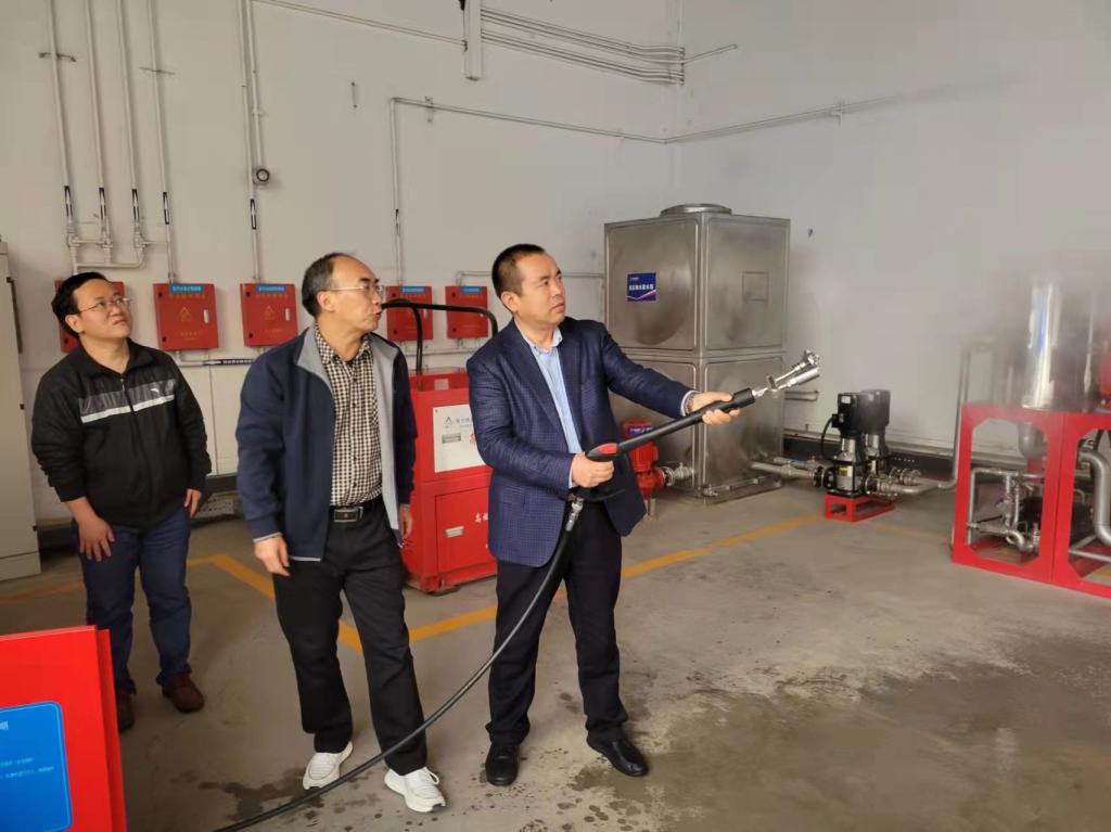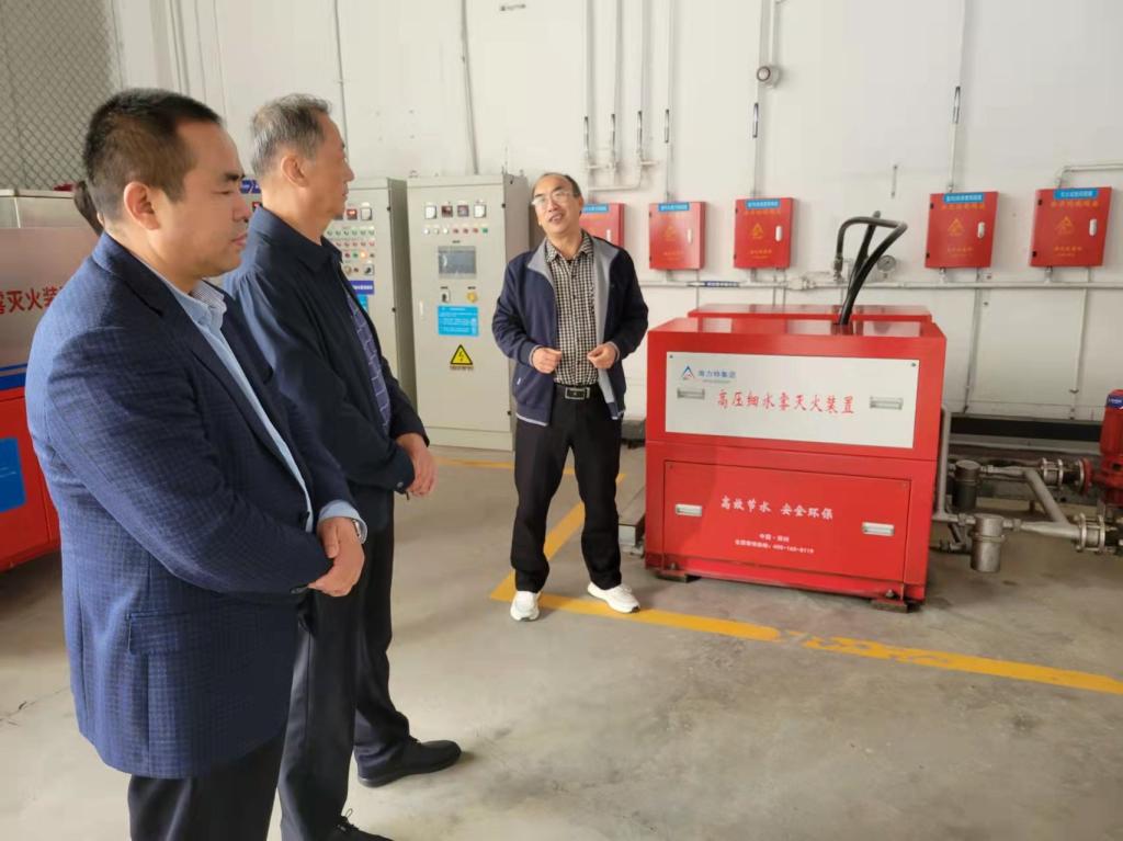 會議間隙,張照雄會長和閆懷宣秘書長一行還走訪了部分會員企業,與會員代表座談交流,觀摩學習消防新技術新產品,體驗高壓細水霧滅火裝置。
