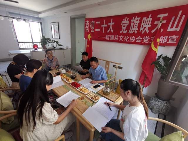 為慶祝中國(guó)共產(chǎn)黨成立101周年,6月30日下午,新疆茶文化協(xié)會(huì)黨支部在烏魯木齊中海九號(hào)公館1號(hào)樓1單元701室協(xié)會(huì)新址舉辦主題為“喜迎二十大 黨旗映天山 ”黨日活動(dòng)。活動(dòng)由新疆茶文化協(xié)會(huì)黨支部書(shū)記王洪主持。