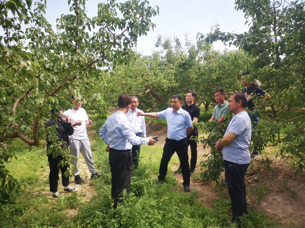 18日上午,在托克遜縣夏鎮(zhèn)和郭勒布依鄉(xiāng)杏生產(chǎn)示范園,托克遜縣林草局工作人員為與會代表詳細介紹了各個示范園的基本情況,參會代表通過實地參觀對當?shù)氐男赢a(chǎn)業(yè)栽培現(xiàn)狀有了深入的了解,并就當?shù)噩F(xiàn)行的模式和栽培中存在的問題等進行了實地交流和探討。