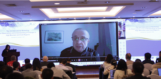 隨后,芬蘭科學和人文院院士馬庫·庫馬拉發表視頻致辭,他表示亞洲高山區和北極寒區關聯密切,此次會議為進一步梳理在該方面的科學進展提供了重要契機,他表示將在該領域持續加強同中國科學研究領域的合作;比利時皇家海外科學院院士菲利普·德馬耶爾線上為大會致辭,他指出在青藏高原、北極地區,甚至在天山附近正在發生的變化,這不僅對“一帶一路”氣候變化敏感地區產生重要影響,而且還影響著世界經濟及人類生活,因此建立一個密集而可靠的觀測網絡測量和了解全球氣候的空間和時間變化以及分析環境變化具有重要意義。