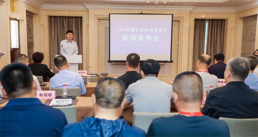 新疆農業農村機械化發展中心書記謝國政在新聞發布會上發布了2024年新疆農業機械博覽會的信息。