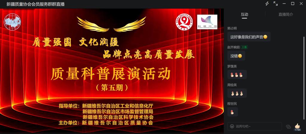 黨的二十大報告指出,高質(zhì)量發(fā)展是全面建設社會主義現(xiàn)代化國家的首要任務。根據(jù)2023年度質(zhì)量科普宣傳工作整體安排,5月31日,新疆質(zhì)量協(xié)會以“質(zhì)量強國 文化潤疆 品牌點亮高質(zhì)量發(fā)展”為主題組織開展了第五期質(zhì)量科普展演、有獎知識競答活動。