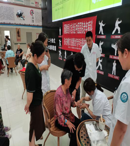 隨著我國老齡化進程的加快,老年失眠的發(fā)病率逐年升高,越來越引起醫(yī)學界的重視。中醫(yī)在治療老年失眠方面突顯出顯著的療效,為積極做好基層醫(yī)院鄉(xiāng)鎮(zhèn)醫(yī)療技術(shù),促進新疆境內(nèi)老年醫(yī)學科的綜合發(fā)展,2023年7月23日,新疆老年保健協(xié)會聯(lián)合自治區(qū)中醫(yī)醫(yī)院老年病科的專家,前往阿克蘇地區(qū)沙雅縣人民醫(yī)院,進行景衣安神散穴位貼敷治療失眠的技術(shù)推廣,現(xiàn)場進行操作,演練,貼敷病人80余人。
