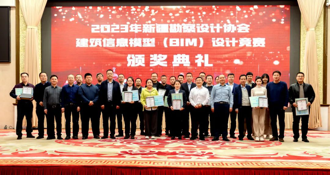 2023年新疆建筑信息模型(BIM)設計競賽獲獎項目代表及頒獎嘉賓合影