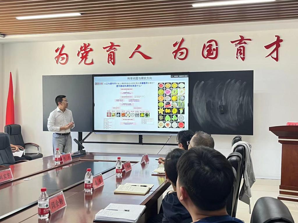 交流會上,劉識副研究員以“西甜瓜品質及發育性狀基因挖掘與功能分析”為題,對在基因組馴化、自然群體變異和正向遺傳學層面,利用生物信息學和分子生物學手段開展的基礎理論研究和分子育種工具開發等工作進行了匯報。匯報結束后,與會人員就西甜瓜瓤色、多心室、果形變化等問題進行了深入的探討和交流。