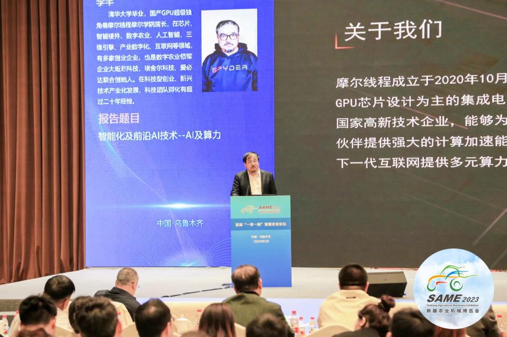 本次論壇圍繞“一帶一路”戰略與區域特色和優勢農業生產場景,探索“場景+鏈式”智慧農業技術整體解決方案,共謀數字技術全產業鏈應用實現路徑,共商智慧農業創新發展和推廣應用模式的主題,中國工程院院士、石河子大學機械電氣工程學院研究員、博士生導師陳學庚,中國工程院院士、新疆大學教授吾守爾·斯拉木應邀分別做題為“無人農場建設促進新疆棉花高質量發展”、“群體智能自主作業智慧農場”的主旨報告。中國科學院大學現代農學院常務副院長馮鋒,中國農業機械化科學研究院副院長方憲法,摩爾線程、摩爾學院院長李豐,中國農業機械流通協會智慧農業首席科學家李迅分別圍繞“農業發展展望--智慧農業”“智能農機裝備進展”“智能化及前沿AI技術--AI及算力”“生態系統內循環發展的未來農場模型”作6個內容豐富、視角廣泛、觀點鮮明、立意高遠的主題演講。