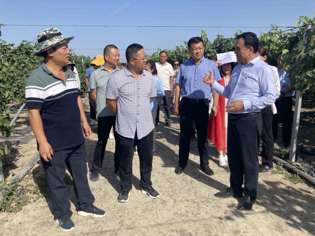 在新疆農科院園藝所安寧區葡萄試驗基地,全體黨員實地了解葡萄育種栽培種植技術和各類特色葡萄育種資源,園藝所葡萄專家伍新宇研究員介紹了新疆葡萄產業發展動態和最新科研成果應用情況。他表示,園藝所葡萄團隊在改進新疆葡萄品種領域深耕多年,通過綜合應用多種栽培措施使新疆鮮食葡萄品質有了較大的提升。