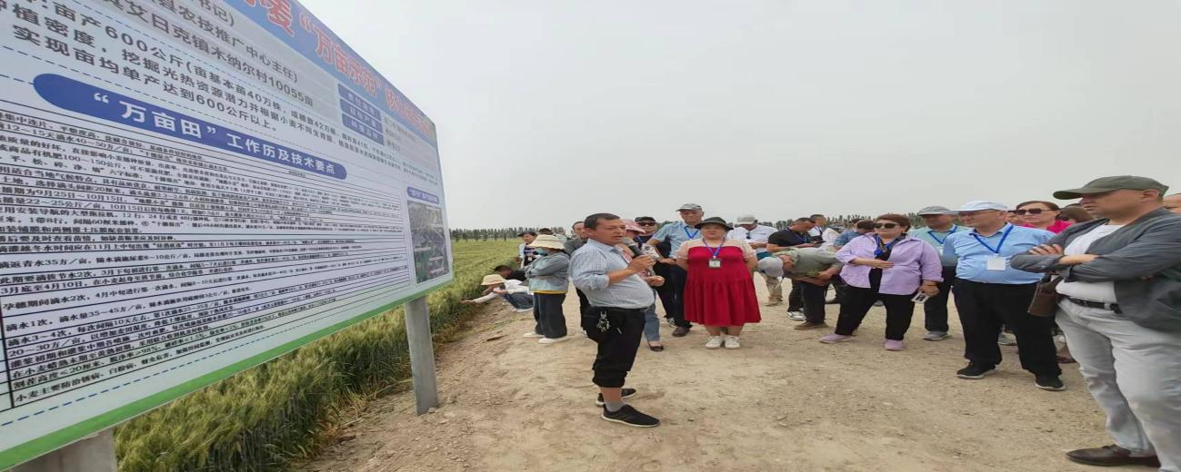 (新和縣木納爾村萬畝片小麥種植示范區(qū)現(xiàn)場教學(xué))