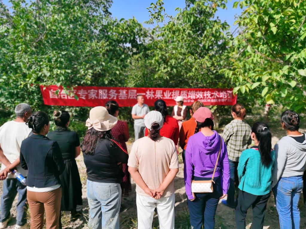 新疆林學(xué)會(huì)致力于進(jìn)一步強(qiáng)化學(xué)會(huì)建設(shè),發(fā)揮學(xué)會(huì)的群眾組織力、持續(xù)發(fā)展力和社會(huì)影響力,提供良好的公共服務(wù)。根據(jù)學(xué)會(huì)的業(yè)務(wù)專長(zhǎng),9月16日,新疆林學(xué)會(huì)派出了以新疆維吾爾自治區(qū)林業(yè)技術(shù)推廣總站為主體的科普小組,前往阿克蘇地區(qū)烏什縣奧特貝希鄉(xiāng)開展林果栽培技術(shù)科普宣講活動(dòng)。