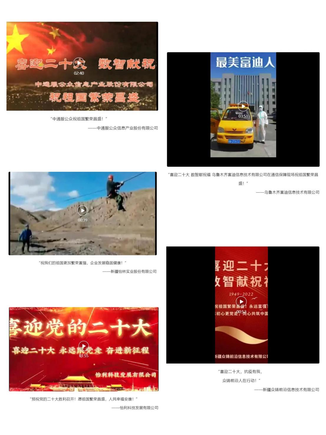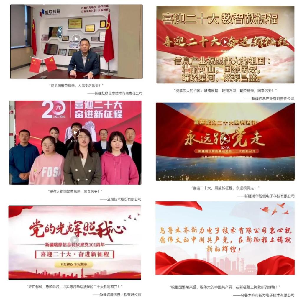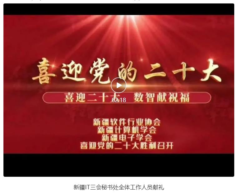 為喜迎黨的二十大勝利召開,新疆軟件行業(yè)協(xié)會(huì)、新疆計(jì)算機(jī)學(xué)會(huì)、新疆電子學(xué)會(huì)(以下簡(jiǎn)稱“新疆IT三會(huì)”)開展“喜迎二十大 數(shù)智獻(xiàn)祝福”作品征集活動(dòng)。會(huì)員企業(yè)通過(guò)拍攝照片、視頻的方式向偉大的黨送去真摯祝福,表達(dá)了IT企業(yè)們對(duì)黨和祖國(guó)的無(wú)限熱愛(ài)。
