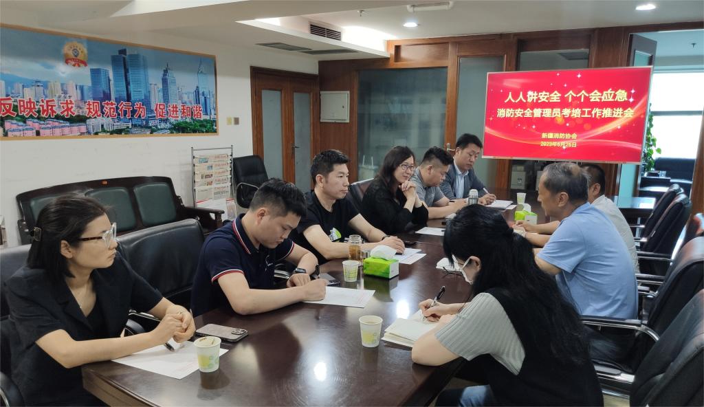 為推進消防安全管理員培訓和職業技能等級認定工作,2023年6月26日,新疆消防協會組織召開消防安全管理員考培工作推進會。會議由新疆消防協會黨支部書記、秘書長閆懷宣主持,張照雄會長出席會議并對消防安全管理員培訓和職業技能等級認定工作提出具體要求。梁嬋英、肖建國、劉強、楊一倫等培訓合格的消防安全管理員職業技能等級認定督導員考評員代表和消防設施操作員培訓機構代表慕剛、梁超等參加會議。