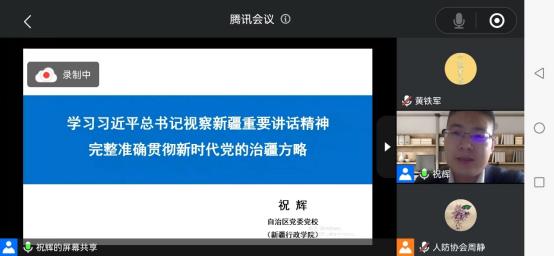 培訓會專題輔導講座《學習習近平總書記視察新疆重要講話精神,完整準確貫徹新時代黨的治疆方略》由自治區黨委黨校經濟學教研部主任、教授、博士祝輝主講,講座分“新時代黨的治疆方略的立論基礎”、“新時代黨的治疆方略的豐富內涵”、“新時代黨的治疆方略的貫徹落實”三部分進行闡述。講座結束后,學會代表做了交流發言。