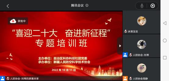 2022年10月11日,自治區科技社團黨委舉辦“喜迎二十大 奮進新征程”專題培訓會,新疆老科協積極組織會員參加培訓,精彩的培訓內容在廣大老科協會員中引起熱烈反響。