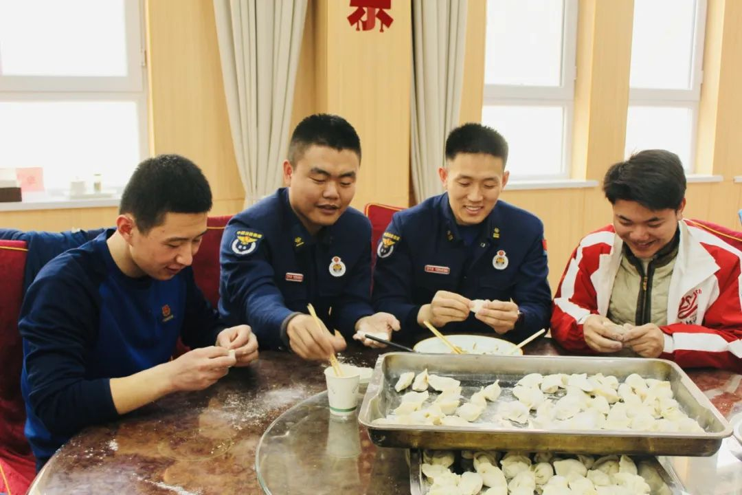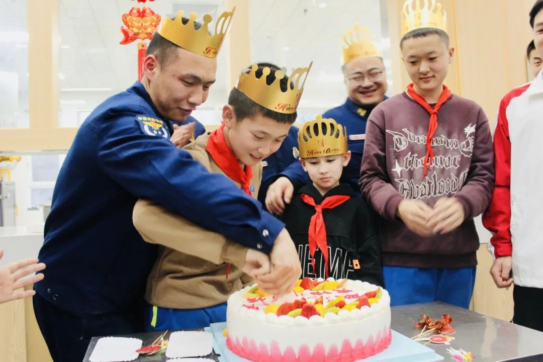 在食堂的餐桌上,早已擺滿了各式各樣的食材原料,指戰(zhàn)員和來隊的志愿者、孩子們共同參與到“包餃子”活動中,一起調(diào)餡、搟皮、包餃子,分工合作,忙得不亦樂乎。大家邊包餃子,邊聊天,你一言、我一語,一張張笑臉、一份份濃情都在此刻展現(xiàn)。很快,一碗碗熱騰騰的餃子、湯圓就端上了桌。最后,指戰(zhàn)員們和志愿者、孩子們共同開展“共青團愛心生日會”活動。生日會上,每個人的臉上都洋溢著幸福的笑容,大家一起唱生日歌、吹蠟燭,在這美好的一刻許下生日愿望。