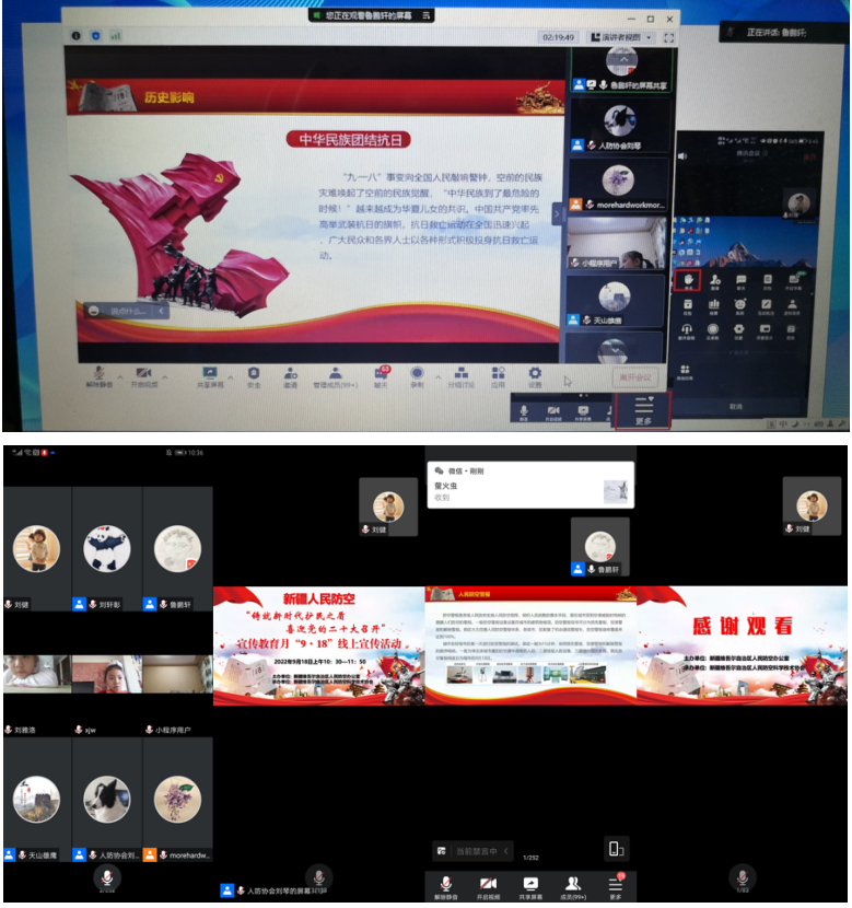 新疆人防科技協會作為本次活動的承辦單位,在人防辦、科協的指導下,緊緊圍繞“喜迎二十大科普向未來”這個主題,在烏魯木齊市靜態管理期間,精心策劃,周密安排,精心組織,積極籌備,按期推進,嚴格審查,確保效果。此次全國科普日暨“9·18”警報試鳴日活動依托騰訊會議系統開展線上直播活動。活動開始,通過播放人防科教宣傳片,組織自治區首席人防科學傳播專家魯鵬軒開展人防知識精彩講座及互動,并設置有獎問答環節,進行線上有獎競答,將活動推向高潮,答題正確的10名同志均獲得了精美紀念品。播放新疆藍天救援隊隊員開展的心肺復蘇搶救、急救包扎等防災減災技能演示體驗視頻,網友紛紛留言稱贊。