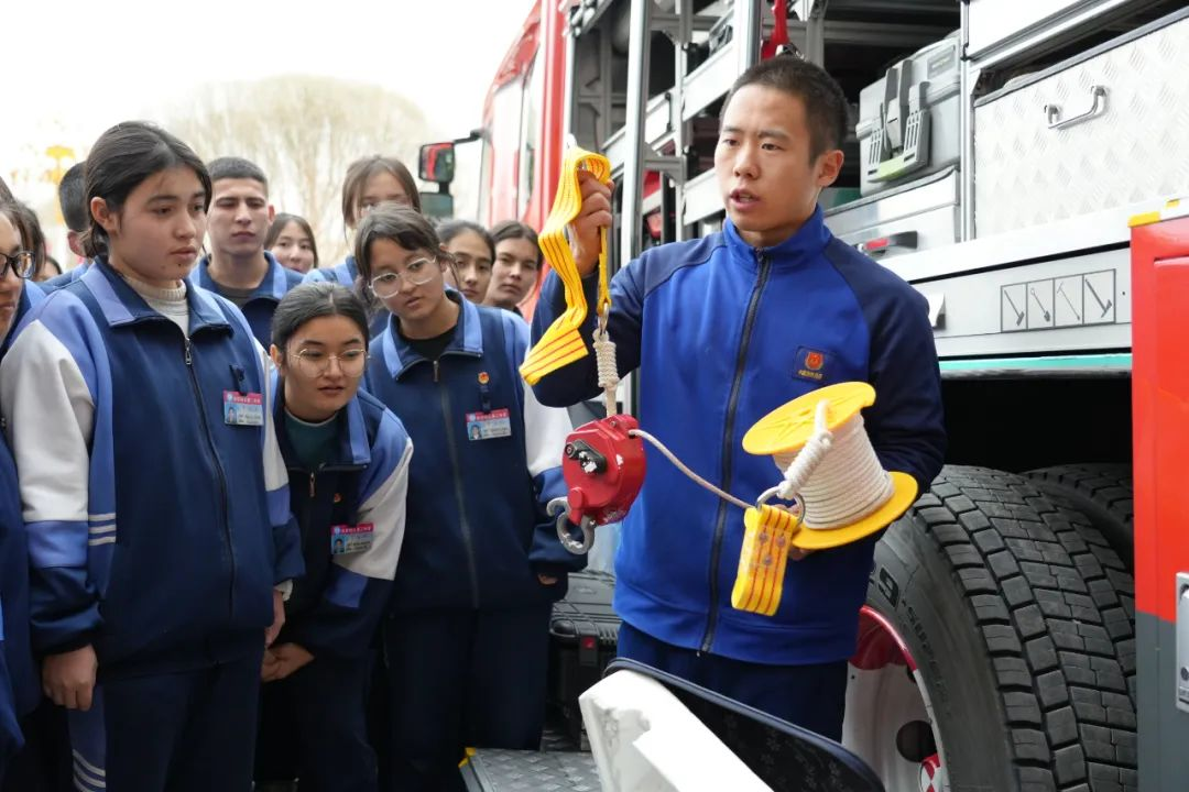 “發(fā)生火災時,千萬要保持冷靜,用濕毛巾捂住口鼻,身體盡量貼近地面,按照疏散指示標志所指方向有序撤離……"在和田縣消防救援大隊營區(qū),宣傳員為師生演示了各類消防車輛器材裝備操作方法,并穿插講解了發(fā)生火災事故如何正確撥打火警電話、如何迅速逃生、火場逃生的動作要領及注意事項等消防知識,并隨機設置火情,組織師生在營區(qū)內開展疏散逃生演練,有效提高了廣大師生面對突發(fā)災害的防護和自救能力。
