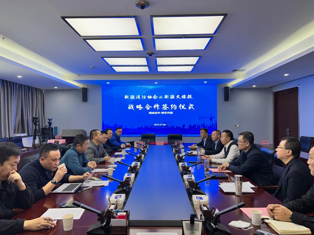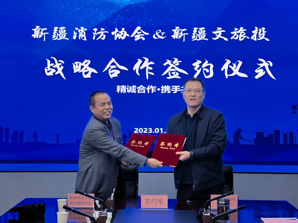 為深入學習貫徹黨的二十大精神,貫徹安全發展理念,履行好行業協會社會職能,筑牢安全發展“防火墻”,推進會企深度合作,助力企業高質量發展,2023年1月6日上午,新疆消防協會與新疆文化旅游投資集團有限公司在新疆交通智能科技大廈22樓會議室舉行《合作框架協議》簽約儀式。簽約儀式由新疆文化旅游投資集團有限公司安全管理部負責人劉巖峰主持,新疆文化旅游投資集團有限公司黨委書記、董事長王宏江和新疆消防協會黨支部書記、秘書長閆懷宣出席簽約儀式并講話。