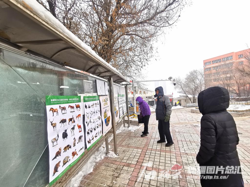 小區居民在觀看保護動物掛圖。石榴云/新疆日報記者 曹華攝