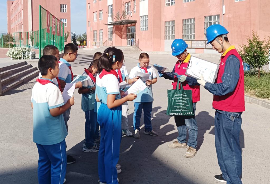 8月26日,國網哈密公司的電力科技工作者在哈密市第四小學開展“小喇叭·守護大安全”用電安全知識進校園活動。