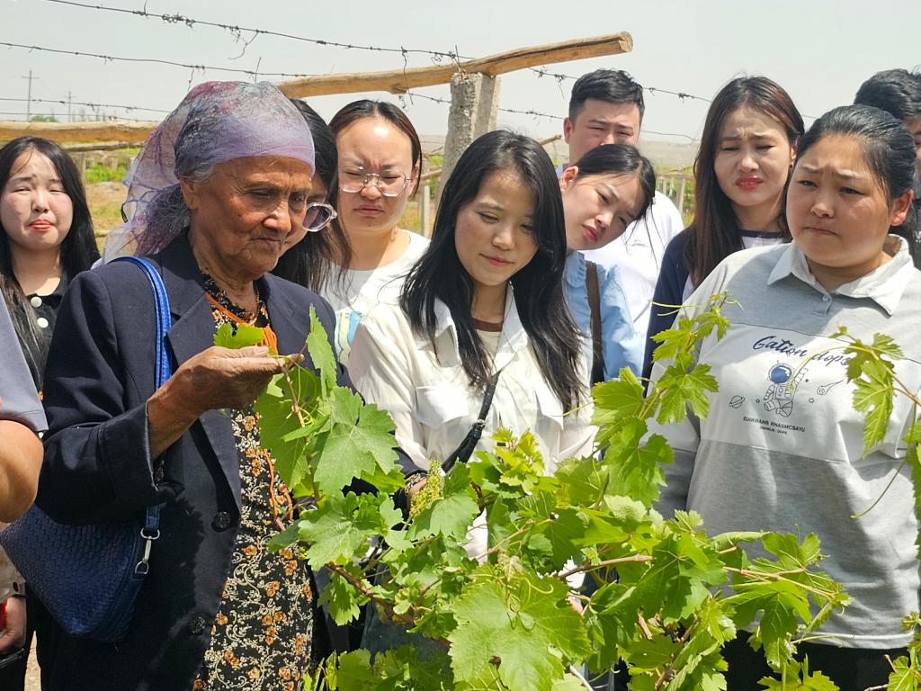 講述結(jié)束后,海力其汗親自帶領(lǐng)大家參觀了她現(xiàn)在的葡萄種植基地,給大家認(rèn)真的講述了她在葡萄和其它新疆特色林果栽培技術(shù)方面正在試驗的新技術(shù)和新突破,大家看到已年近耄耋的園藝科技工作者仍然堅守著她所熱愛的事業(yè),在孜孜不倦地探索和奉獻(xiàn),大家深受觸動。
