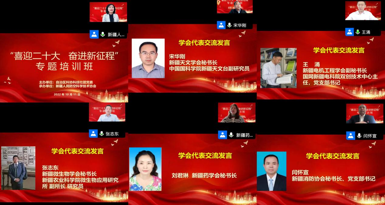 2022年10月11日上午,自治區科技社團黨委舉辦了“喜迎二十大 奮進新征程”線上專題培訓會。會議由新疆人防協會秘書長劉健主持,新疆畜牧獸醫學會積極組織會員通過視頻形式參加會議。