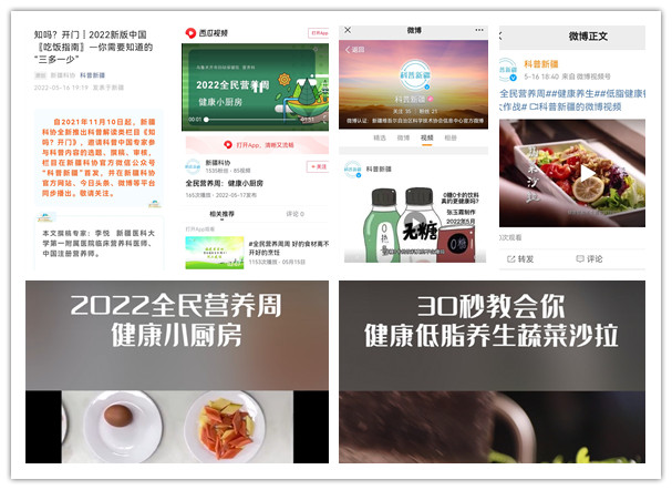 全民營養(yǎng)周期間,新疆營養(yǎng)學(xué)會專家通過科協(xié)官方微信、微博、今日頭條、抖音等平臺,線上解讀各族群眾所關(guān)心關(guān)注的營養(yǎng)學(xué)問題。通過科普解讀類欄目《知嗎?開門》,發(fā)布《2022年新版中國“吃飯指南”——你需要知道的“三多一少”》《喝涼水都會長胖,是真的嗎?》《學(xué)生營養(yǎng)科普經(jīng)典來嘍!》等6篇原創(chuàng)營養(yǎng)科普文章,擴大活動影響力。這期間,在自治區(qū)科協(xié)官網(wǎng)科普文章閱讀量超過1000人次,“科普新疆”官方微信總閱讀量超過3000余人次,微博科普文章閱讀量超過6000人次,今日頭條閱讀總量超過16000人次。此外,在官方抖音、微博、微信、今日頭條同步發(fā)布原創(chuàng)科普微視頻《你會買牛奶嗎?》《30秒教你做出一道健康低脂蔬菜沙拉》《0糖0卡的飲料真的不含糖嗎?》等。其中,微博科普視頻播放量超2000次,今日頭條視頻播放量近6000次;抖音視頻播放量超過1000次。