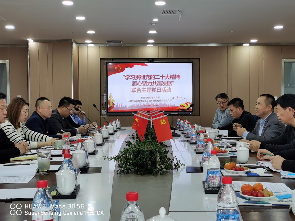 為深入學習宣傳貫徹黨的二十大精神,談體會說感悟話心聲,傾聽企業訴求,廣泛征求會員意見建議,完整準確全面貫徹新發展理念,共同謀劃2023年度發展思路,推進協會及行業產業高質量發展,12月9日下午,新疆消防協會在會員企業烏魯木齊天耀偉業信息技術服務有限公司組織開展“學習貫徹黨的二十大精神凝心聚力共贏發展”主題黨日活動。活動由新疆消防協會黨支部書記、秘書長閆懷宣主持,副會長劉生忠和副會長單位代表吳星城,常務理事文毅、楊志遠和常務理事單位代表孫雪鵬,理事胡曉東、曾志平和理事單位代表趙培焱、邢軍偉及會員企業烏魯木齊天耀偉業信息技術服務有限公司黨員代表參加此次活動。